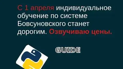 C 1 апреля индивидуальное обучение Python по системе Бовсуновского станет дорогим. Озвучиваю цены.